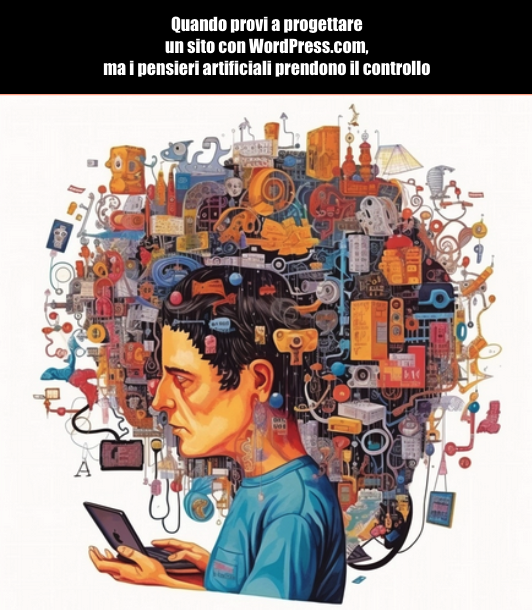 Didascalia del meme: “Quando provi a progettare un sito con WordPress.com, ma i pensieri artificiali prendono il controllo!”