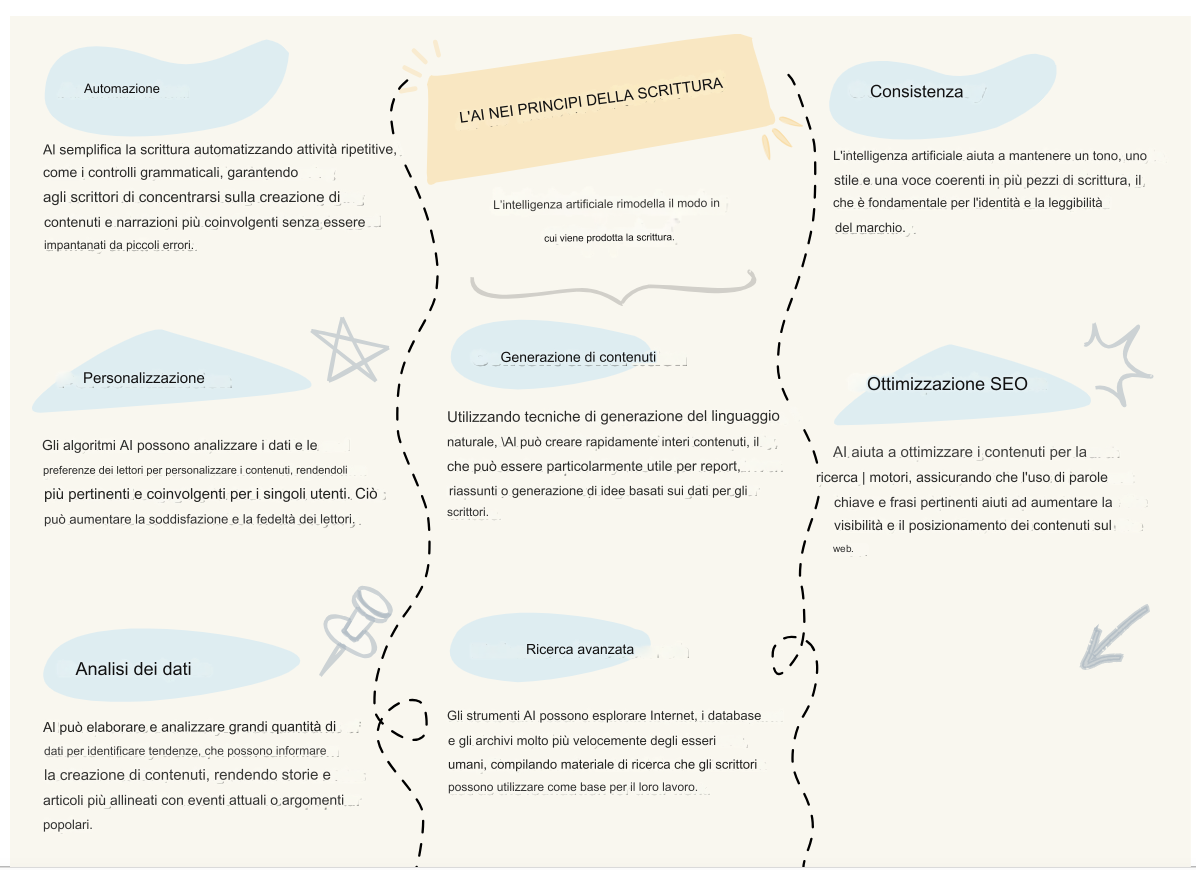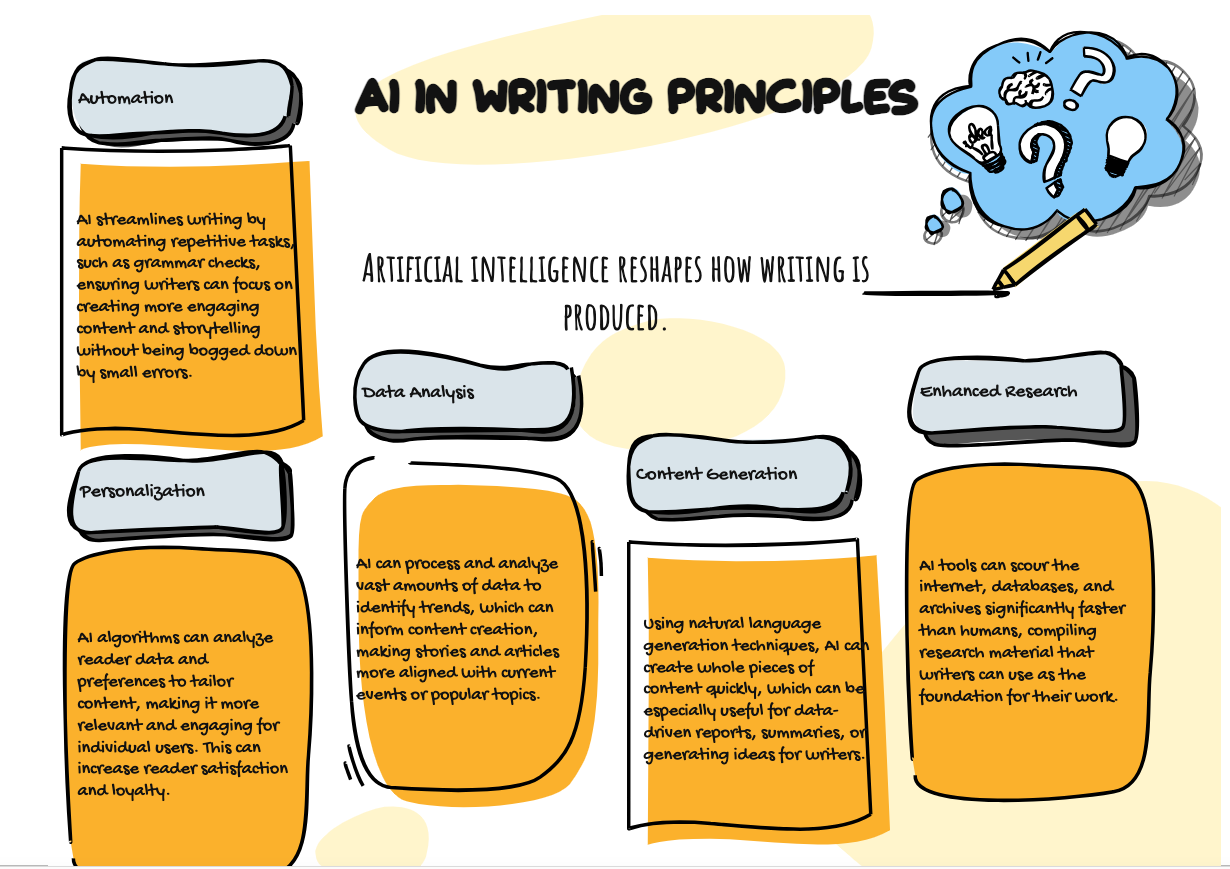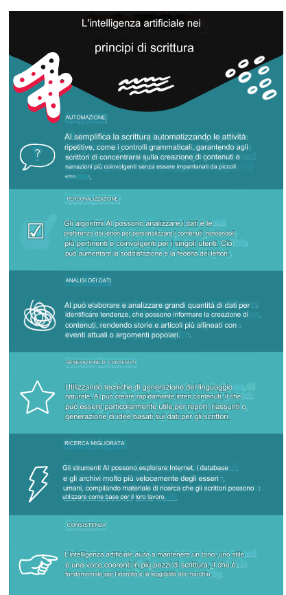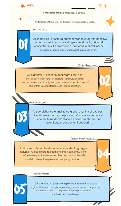[Infografiche con prompt “explain the main principles of artificial intelligence use in writing”, realizzate da Sketchwow e tradotte da Google traduttore]