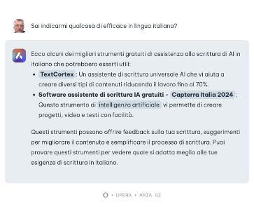Sfuggito ai radar del mercato dell’istruzione attivati dalla nostra Accademia, il browse Opera integra le funzioni di Google Gemini nel modulo Aria, come nell’esempio: