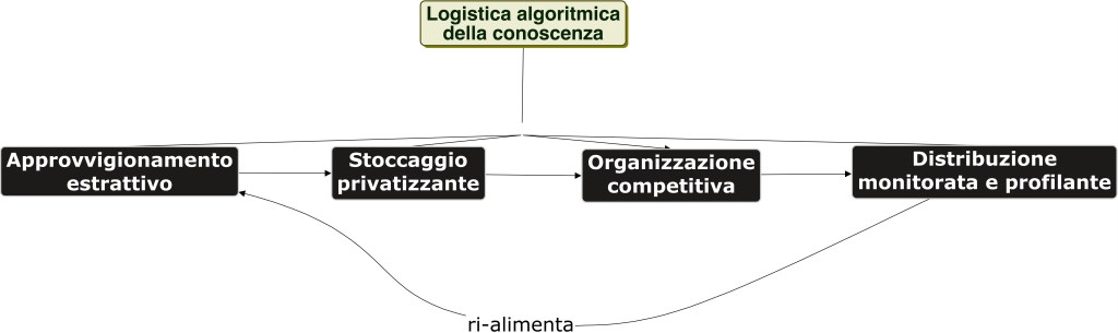 Copilot Pro: Il diagramma di flusso intitolato “Logistica algoritmica della conoscenza” sembra rappresentare un processo ciclico di gestione delle risorse e delle informazioni. Ecco una possibile interpretazione dello scopo di ciascuna fase: