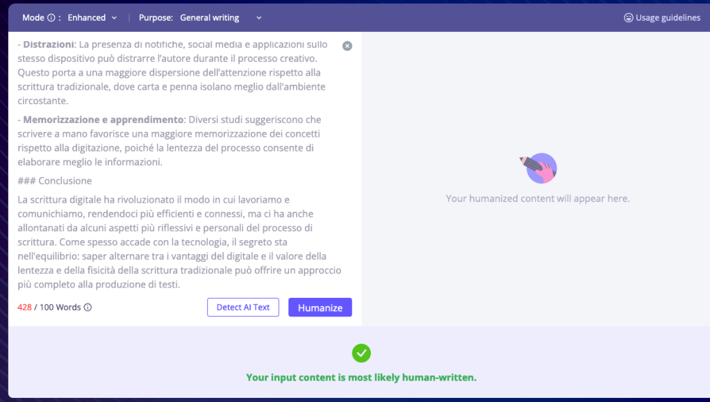 | ChatGP (campione) | “Umanizzazione” di BypassGPT versione free (max 100 parole) |