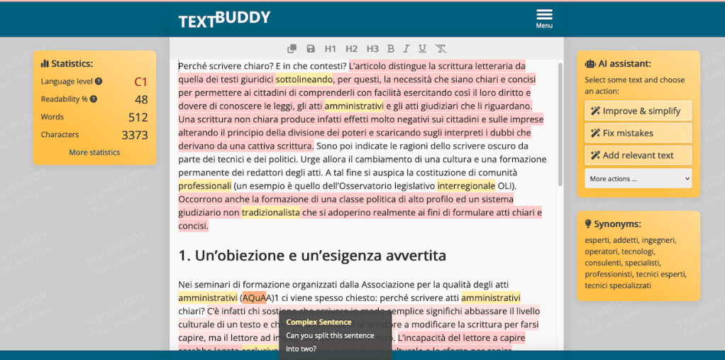 - Mostra disponibilità da parte del personale a scrivere atti chiari, ma occorre un cambiamento culturale profondo per superare gli atteggiamenti burocratici.
