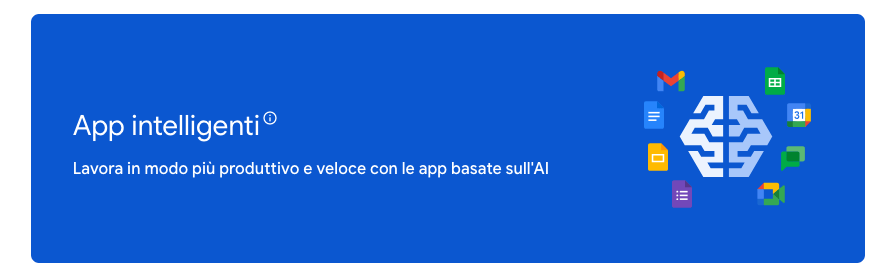 - Gemini per Google Workspace: Questa riga descrive Gemini per Google Workspace, che offre un nuovo modo di lavorare, insegnare e apprendere con l’IA generativa.