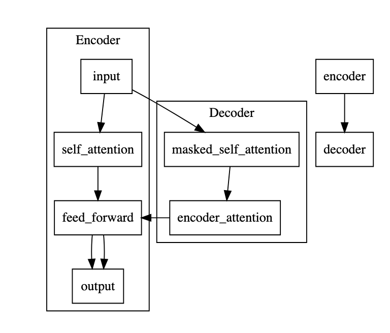 input -> masked_self_attention -> encoder_attention -> feed_forward -> output;