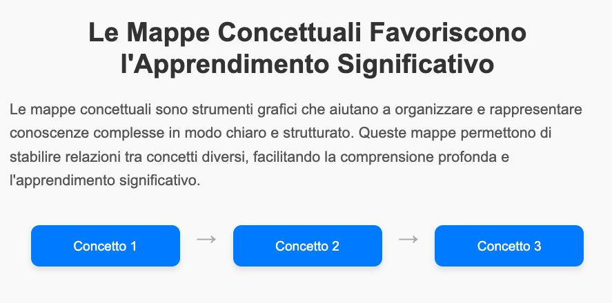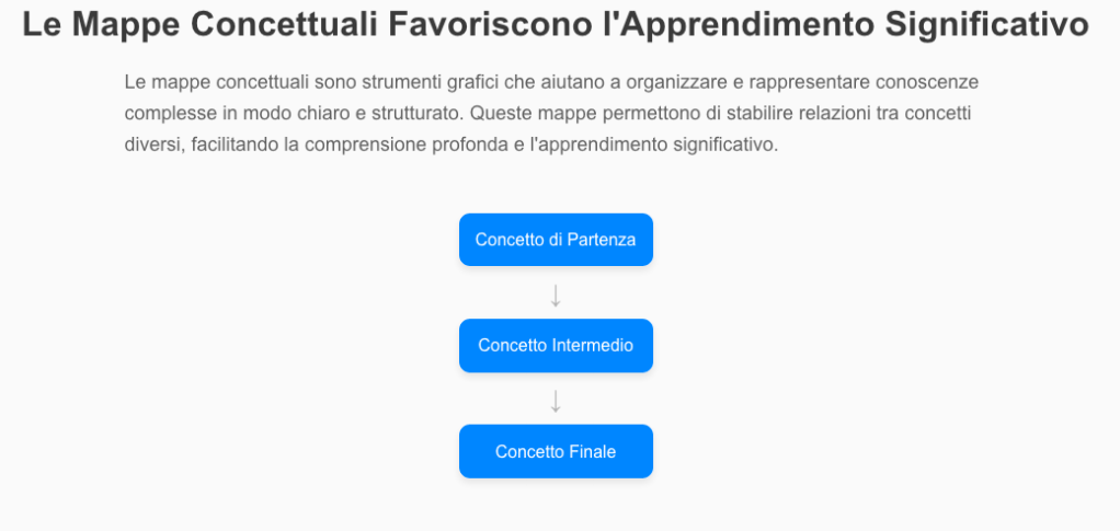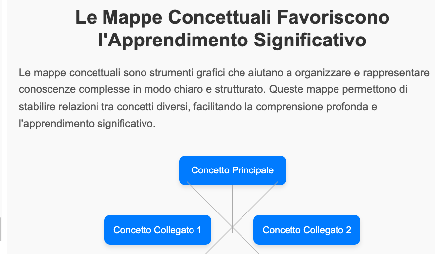 | Relazioni tra concetti | Connessioni significative tra concetti chiave. Le mappe enfatizzano queste relazioni. |