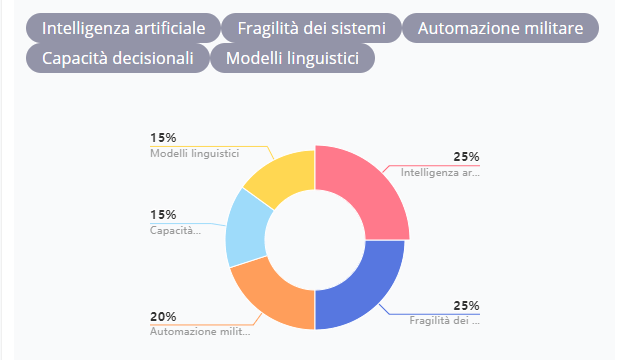 Automazione militareRiguarda l’uso dell’IA e di sistemi automatizzati nelle operazioni militari, un tema centrale nella discussione delle capacità future delle forze armate.