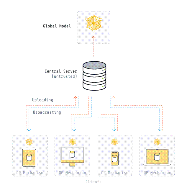Le tecnologie di Differential Privacy (DP) aggiungono rumore statistico calibrato ai dati per prevenire l’identificazione di informazioni individuali pur mantenendo l’utilità statistica del dataset. Nel contesto del Federated Learning, questa tecnica consente l’addestramento collaborativo di modelli senza condividere dati grezzi.[21][22][23]