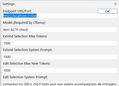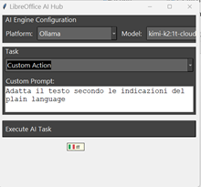 f1 – l’estensione localwriter con impostato l’accesso via Ollama a un LLM sul cloud, con le indicazioni sull’editing del testo fornite nel setting strutturale e nell’input del momento;