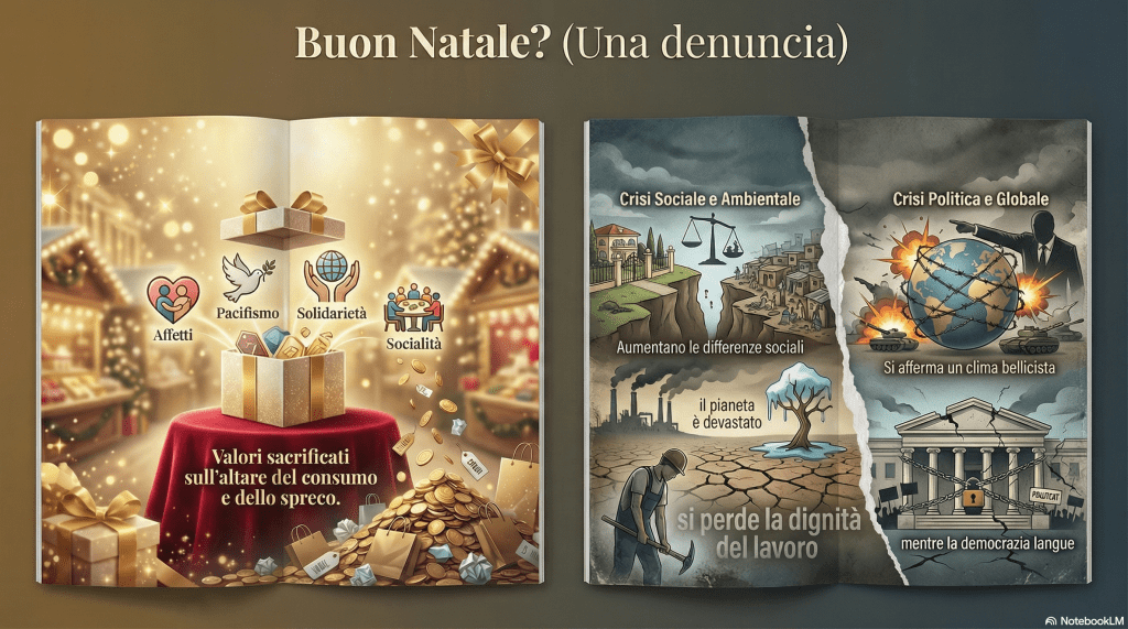 Ecco allora la conseguenza finale e più profonda di questa deriva. Un sistema che mette il consumo al di sopra degli affetti, che normalizza la disuguaglianza, che tollera la guerra e devasta il pianeta non può che culminare nell’erosione della dignità umana e dei processi democratici. Per garantire prezzi bassi e disponibilità infinita di merci, si sacrifica la dignità del lavoro. Per promuovere un individualismo competitivo, si indeboliscono i legami di solidarietà che sono il fondamento della democrazia. Questa non è solo un’altra spiacevole conseguenza; è l’inevitabile punto d’arrivo della grande ipocrisia neoliberale che ha trasformato il Natale nel suo più efficace strumento di propaganda.