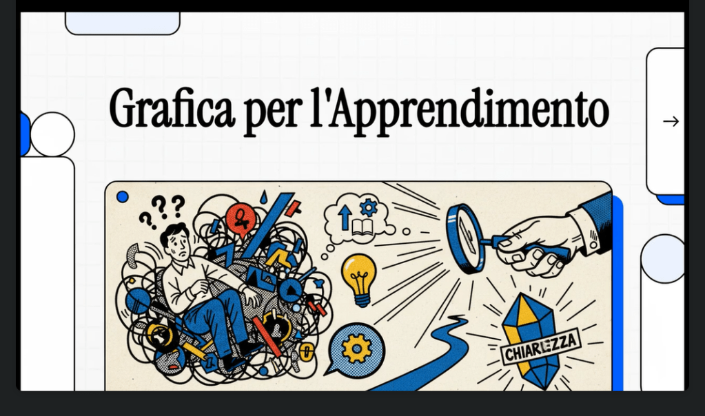 Usa questa consapevolezza per fare scelte migliori nel tuo apprendimento: cerca risorse che utilizzino grafiche esplicative per argomenti complessi, riconosci quando un’immagine rappresentativa è tutto ciò di cui hai bisogno e, soprattutto, non lasciare che la grafica decorativa ti distragga. Possedere questo vocabolario visivo ti dà il potere non solo di imparare in modo più efficace, ma anche di richiedere e creare materiali didattici di qualità superiore.
