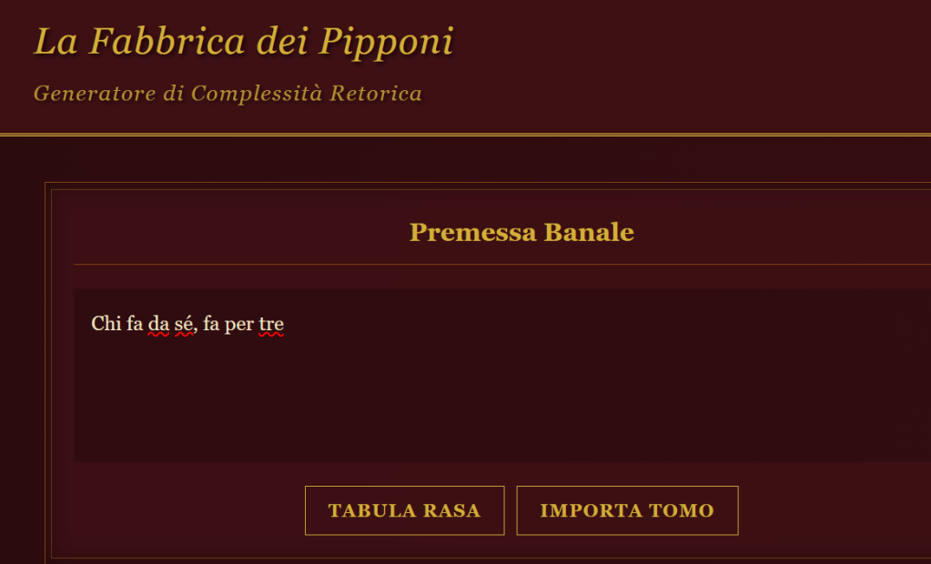Illustri colleghi, stimati accademici, insigni rappresentanti di quella grettezza borghese che osa chiamarsi “praticità”, oggi ci troviamo qui ad analizzare un luogo comune che, come un moderno benchmark, ha invaso le conversazioni domestiche con la prepotenza di un paradigm shift culturale. “Chi fa da sé, fa per tre”: una frase che, nella sua apparente semplicità, nasconde un core value della nostra società neoliberista, dove l’autosufficienza viene elevata a dogma imprescindibile, mentre la cooperazione viene relegata al ruolo di optional da leverage solo in caso di emergenza. Permettetemi di decostruire questo focal point dell’ideologia fai-da-te, che costituisce il vero driver della nostra attuale crisi di rappresentanza sociale. Quando il singolo individuo, armato di tutorial YouTube e di un’irrefrenabile volontà di empowerment, decide di sostituirsi a tre professionisti, non sta compiendo un atto eroico: sta semplicemente perpetuando quella cultura del sacrificio che costituisce il pain point della nostra modernità. Analizziamo, se volete sopportare la mia divagazione, la roadmap implicita in questo mantra contemporaneo. Il “fai da te” non è altro che la manifestazione tardocapitalistica di quella etica protestante che vedeva nel lavoro non una necessità, bensì una vocazione. Oggi, armati di trapano a percussione e di una skillset improvvisata, crediamo di poter outperform i professionisti, mentre in realtà stiamo solo alimentando quel loop infinito di insoddisfazione che caratterizza l’uomo postmoderno. E qui, cari ascoltatori, emerge il vero game-changer della questione: chi fa da sé non fa affatto per tre. Chi fa da sé fa semplicemente da sé, perpetuando quell’illusione individualista che ci porta a credere di essere self-made quando in realtà siamo solo self-deluded. La vera rivoluzione, permettetemelo, non consiste nel saper montare un mobile IKEA senza istruzioni, bensì nel riconoscere che la nostra forza risiede nel networking, nella synergy, in quella cooperazione che il volgo, nella sua infinita banalità, considera debolezza. Ars longa, vita brevis, outsourcing eternus.